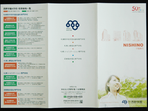 学園案内のパンフレット、オープンキャンパスの応募ハガキ等